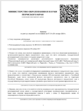 Государственная образовательная лицензия № Л035-01271-78/01781167 от 27.01.2025 г. выдана комитетом по образованию Правительства Санкт-Петербурга.